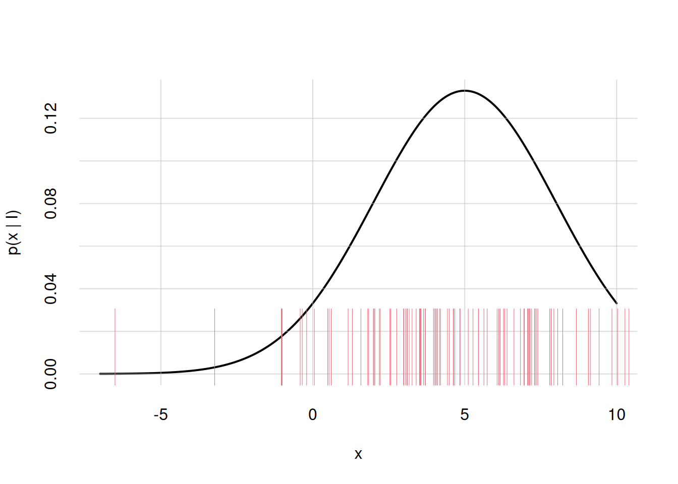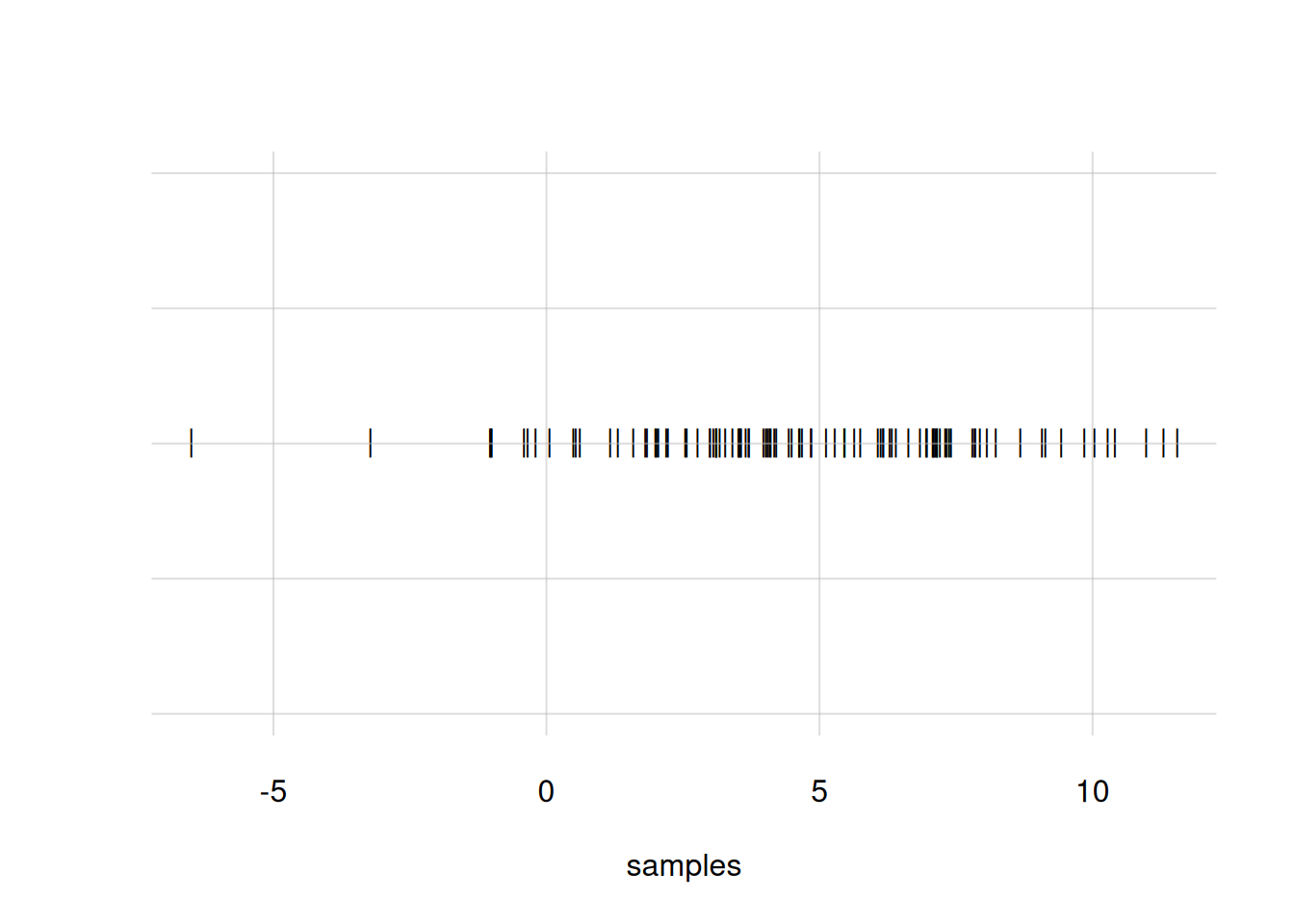 rug(samples, ticksize = 0.25, col = 2)Warning in rug(samples, ticksize = 0.25, col = 2): some values will be