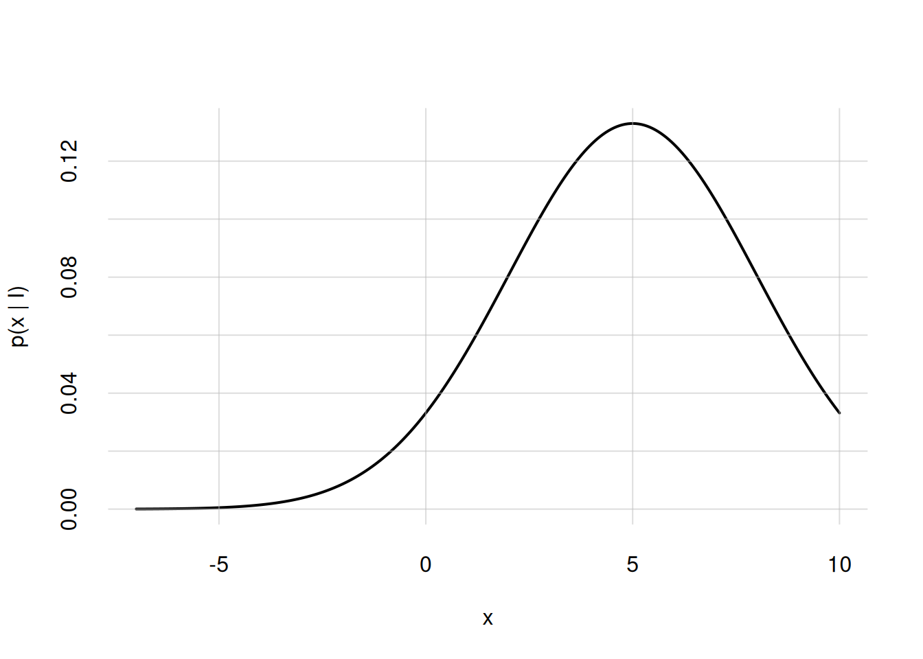 flexiplot(x = x, y = p, ylim = c(0, NA), ylab = 'p(x | I)')